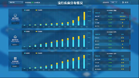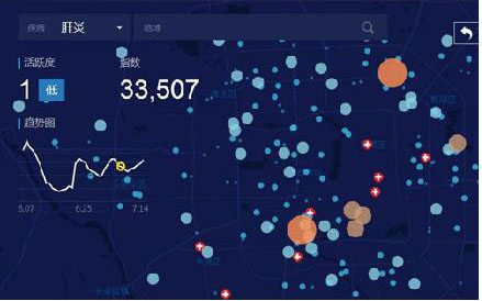 汇集区域内各级医院上报的门诊流行疾病、住院重点疾病及重点手术疾病等进行数据收集,通过数据分析系统对患者 诊疗及住院等进行智能分析,为监管部门掌握重点疾病分布及诊疗质量提供数据支撑。