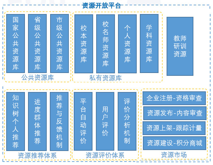 资源提供方、应用方、监管方,形成一个自循环、自更新的生态系统,保障教学资源资源生态
