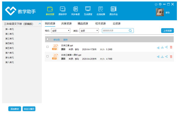 支持调用云端资源、学科工具、互动试题和教学模板等交互工具;