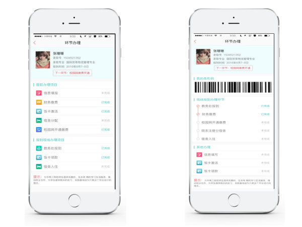 提供电子报到单并支持纸质报道联用的形式,支持主扫或被扫二维码、条形码的形式进行办理,支持主流扫描枪等硬件设备提高效率。