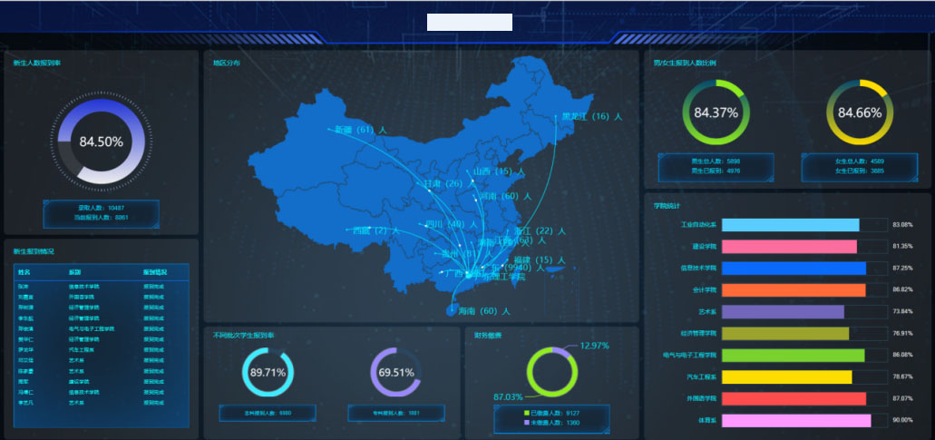 提供精准大数据服务,如生源分析、报到率评估、迎新进度实时播报等(可选),有效减轻迎新工作量的同时提高学校的报到率及缴费率。