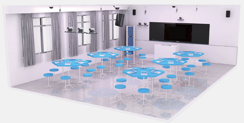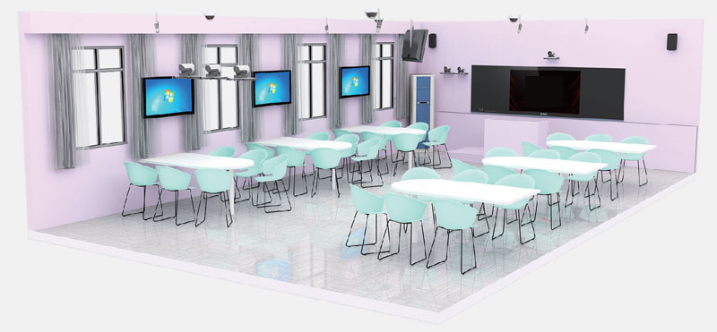 智慧教室是一种以服务教学为核心的创新型教室,是一套实现全媒体、全覆盖、全联动、交互一体的解决方案, 它涵盖了课前、课中、课后的各个教学环节,具有优化呈现教学内容、促进开展课堂互动、便捷获取教学资源等特点,同时具有情景感知、环境智能管控等功能,从而实现健康智能、环保高效的新型课堂教学模式。