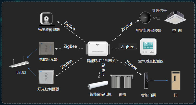 温湿度智能控制,智能灯光调节,空气质量检测,智能门锁管理,智能窗帘。