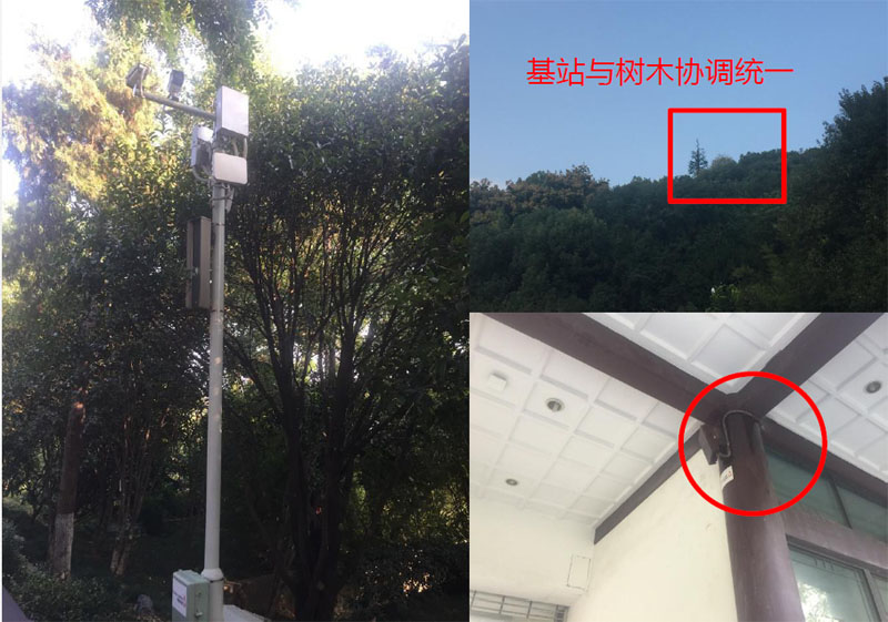 充分利用景区现有屋顶、墙面、杆塔、管道等,精准规划、精准设计,一塔一策,通过宏站、微站、室内分布相结合的方式,在景区道路,根据周围环境,采用绿色藤蔓方柱、仿生树等多种美化覆盖方案;在路灯杆和监控杆的位置,采用微站挂载的覆盖方案,实现了通信设施与人文自然景观的协调统一。
