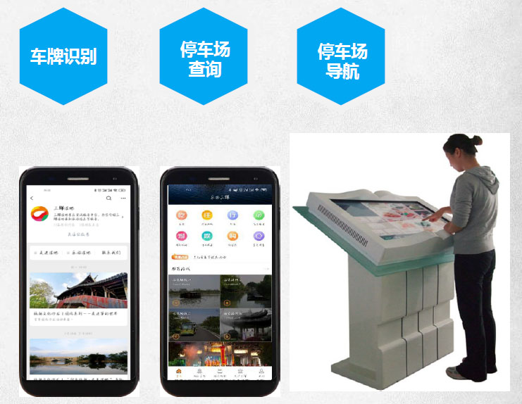 无需取卡,视频自动识别车牌,智能诱导快速寻找车位,微信扫码缴纳车费,可提前自助缴费,提升自驾游游客体验;系统后台同时根据车牌号实现客源地分析。