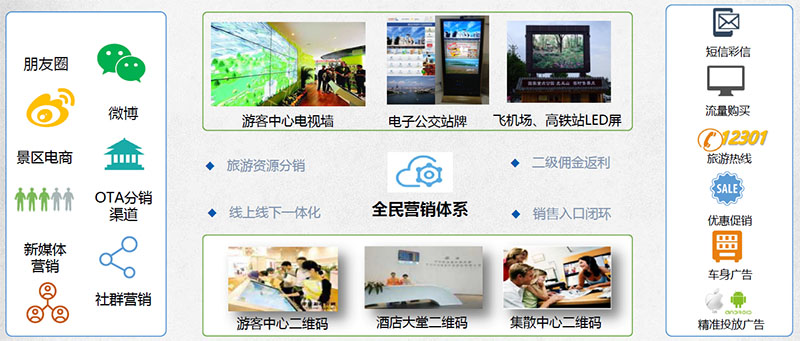 B2C电子商务平台;B2B智慧营销平台;旅游资讯平台;微信公众平台;景区APP应用;智慧营销平台;统一支付管理平台;无线WIFI覆盖系统……