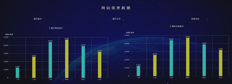 各目的地地经营、产品、游客数据汇集;业务和数据可视化。