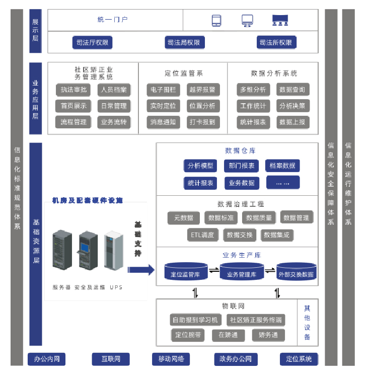 同时平台以业务信息化应用与管理制度相融合的机制,实现社区矫正业务信息 全面化,管理水平智能化,社区矫正工作便捷化,从根本上解决了城乡基层各 司法所、街道办人员不足,工作手段少,管理措施有限等问题,夯实了城乡基 层司法服务能力。