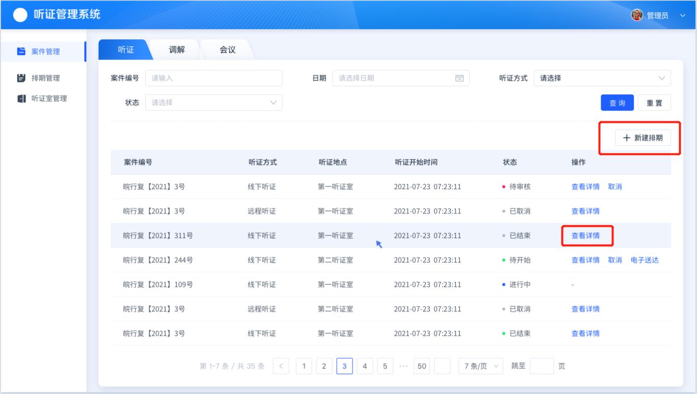 听证前支持对案件进行排期,自动生成听证通知书和文书送达,听证后对听证信息进行记录和查看.
