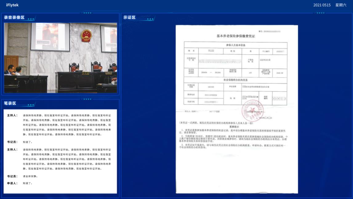 听证系统:采用语音识别、语义理解、语音合成、音视频合成等人工智能技术,实现听证笔录自动生成、同步示证质证等功能,应用于行政复议听证场景,解决听证过程中记录不全、效率不高的问题。