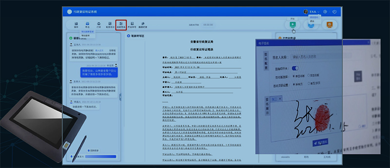 实现对听证过程中的听证笔录进行采集、生成、核查、录入及签名确认,减少审理人员笔录记录工作量。