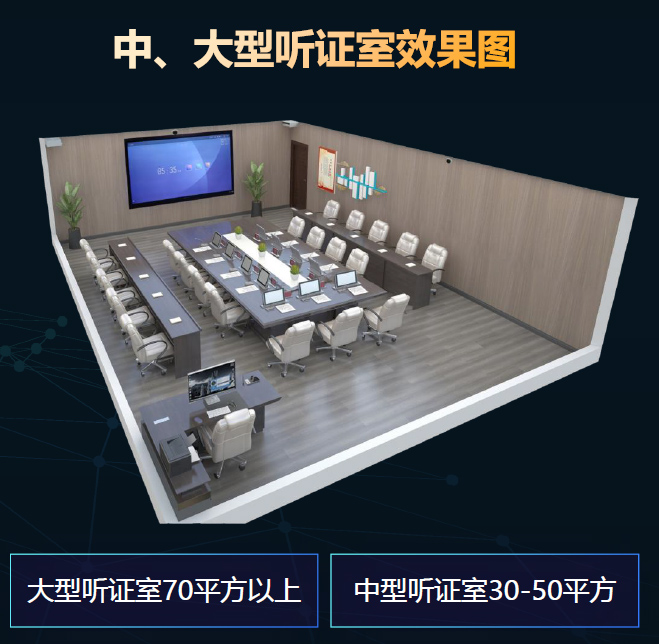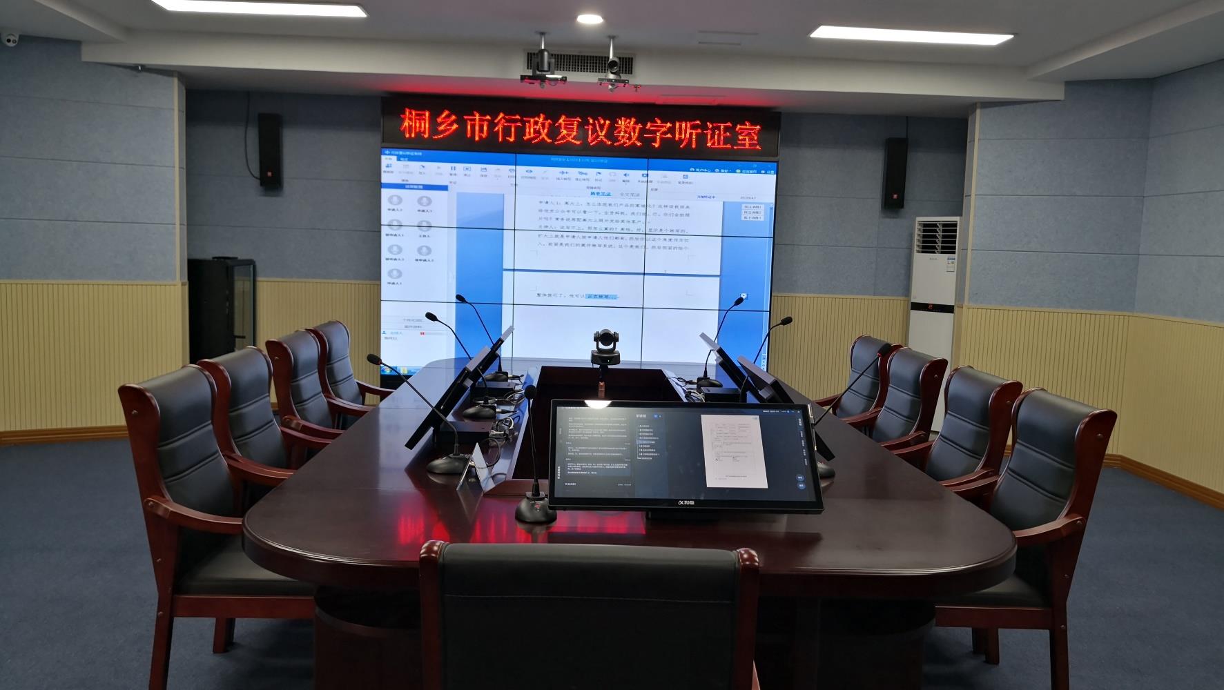 建设行政复议规范性场所,包含同步录音录像、听证转写、电子质证、远程复议,实现设备、系统集约化、规范化建设,满足建设地区行政复议样板听证室的需求。